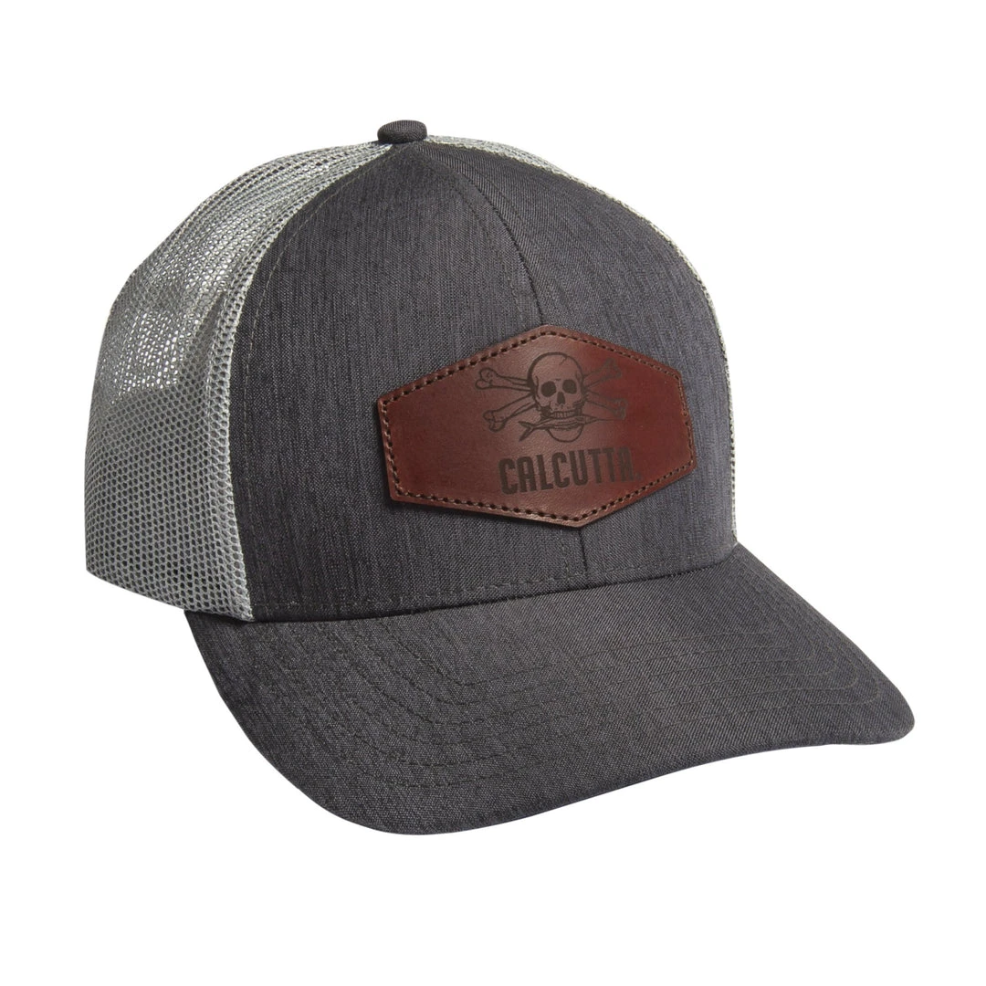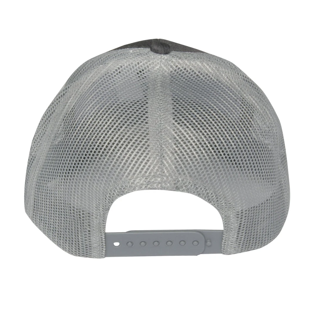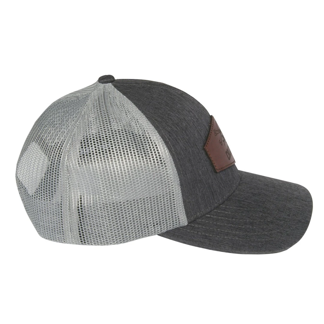You’ll clean up nicely when you wear this hat. Six panel mesh cap with charcoal heather gray crown and brim and gray mesh. Etched leather patch up front and adjustable snap back closure.