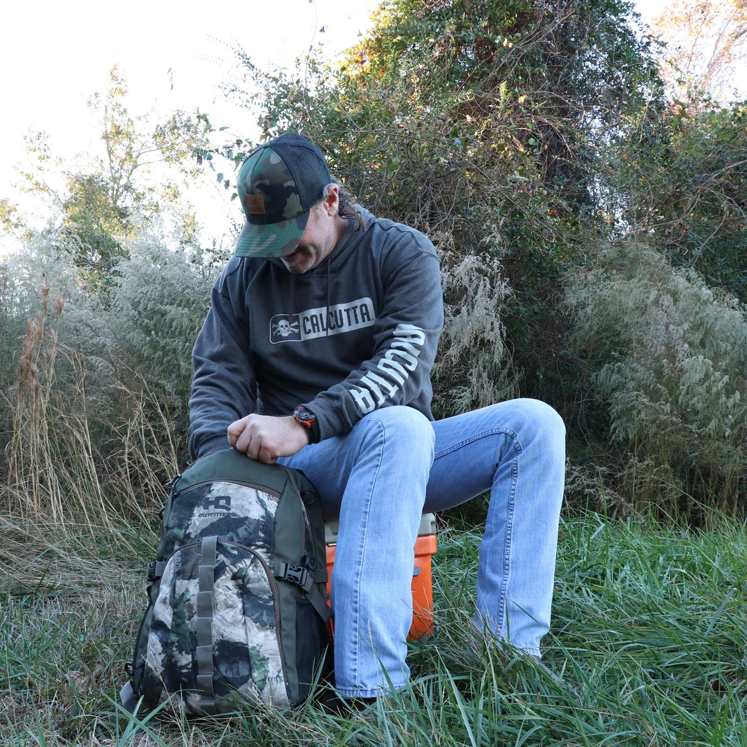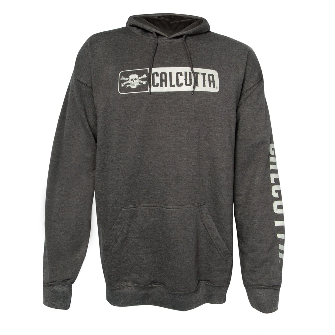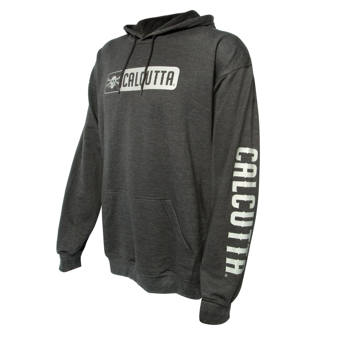 Super-soft, lightweight tri-blend hoodie. Heather gray with classic Calcutta logo on front chest and name on arm.