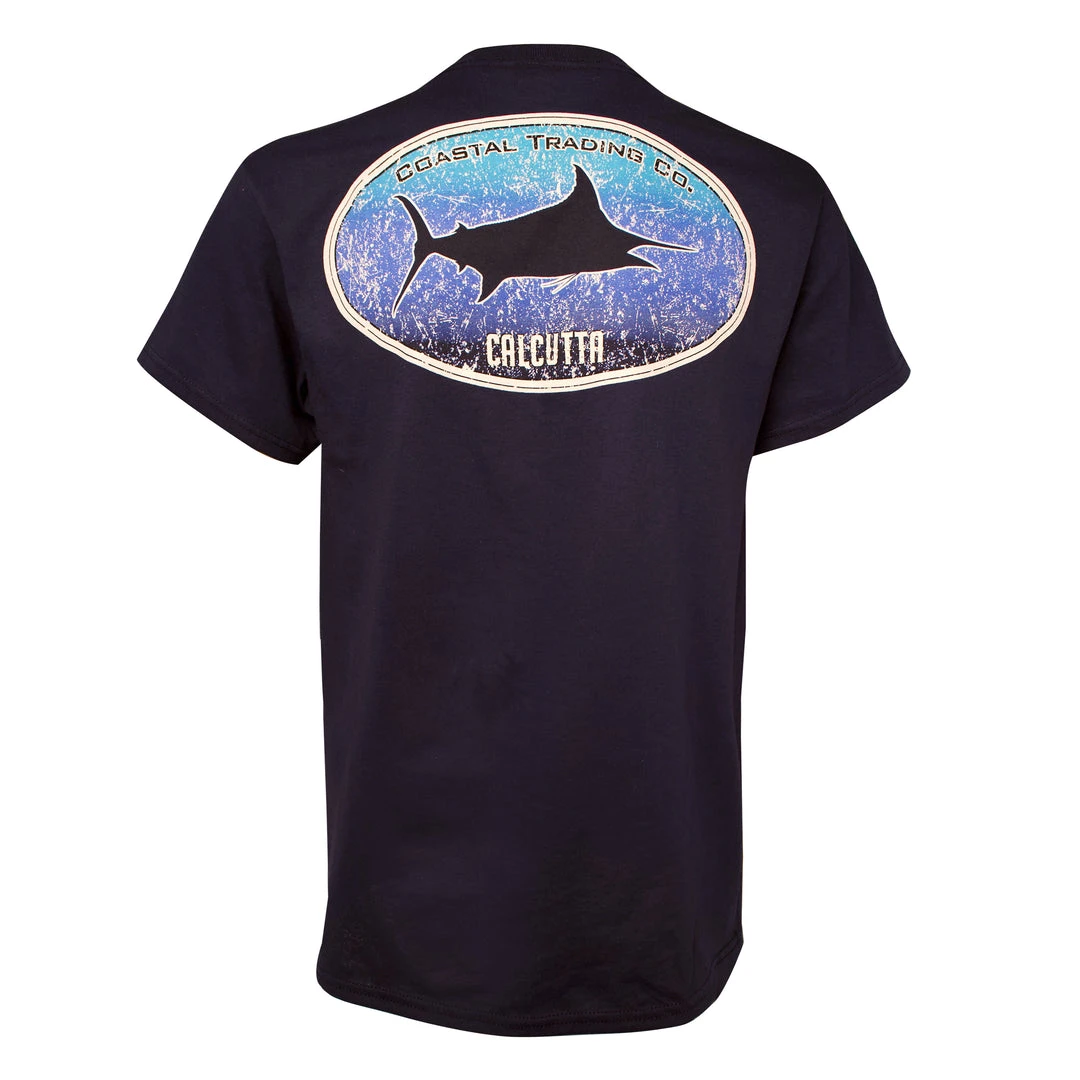 Super soft short sleeve t-shirt with marlin silhouette in blue fade.