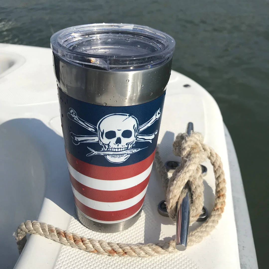 LIMITED EDITION Calcutta red, white and blue tumbler. Features 20oz double wall, vacuum sealed construction, with lid.