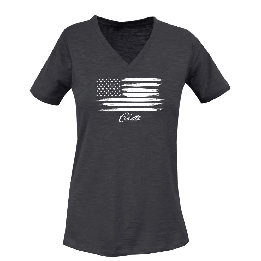 Combed ring-spun cotton jersey knit V-neck tee with side-seams for a curved silhouette. This comfortable and cute t-shirt works as a layering piece or??on its own.