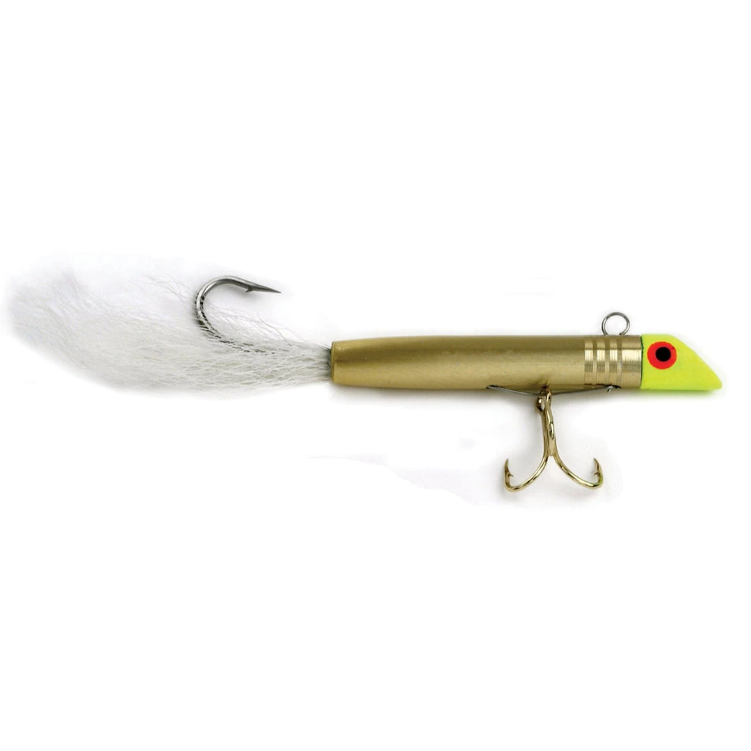 The ORIGINAL GOT-CHA lure is a tried and true fishing lure. These lures are excellent for Bluefish, Spanish Mackerel, Trout, and any fish that feed on small bait fish. The 400 Series has 7/8 oz metal body. Bucktail models have 2/0 single tail hook and #4 gold belly hook. Undressed models have #2 tail hook. Lure is approx. 2 1/2″ in length.
