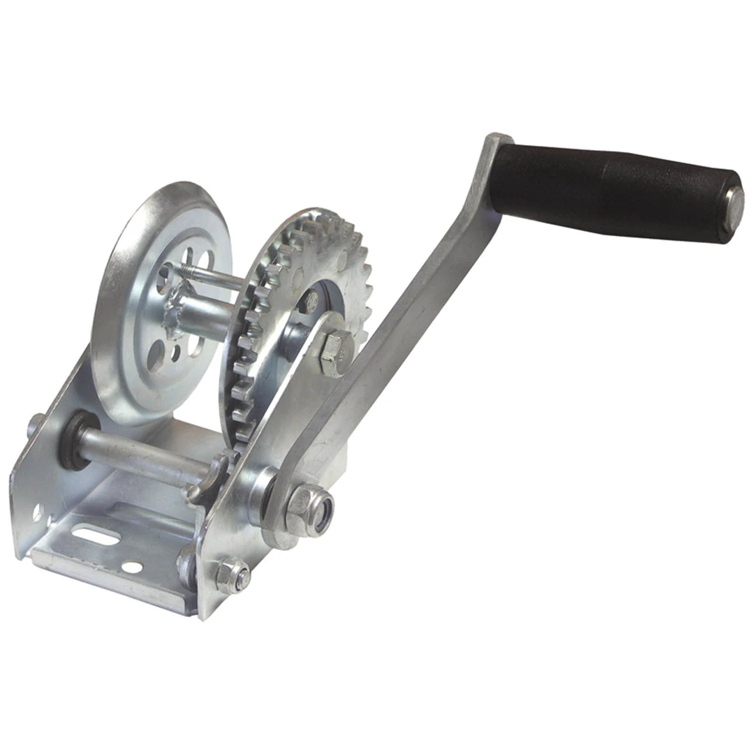 Heavy duty single drive winches feature layered steel gears and gear pawl. The roller handle and? three way pawl allows for easy and safe operation ratchet in/out and neutral. Ready to be used in the harshest environments. Universal mounting holes.