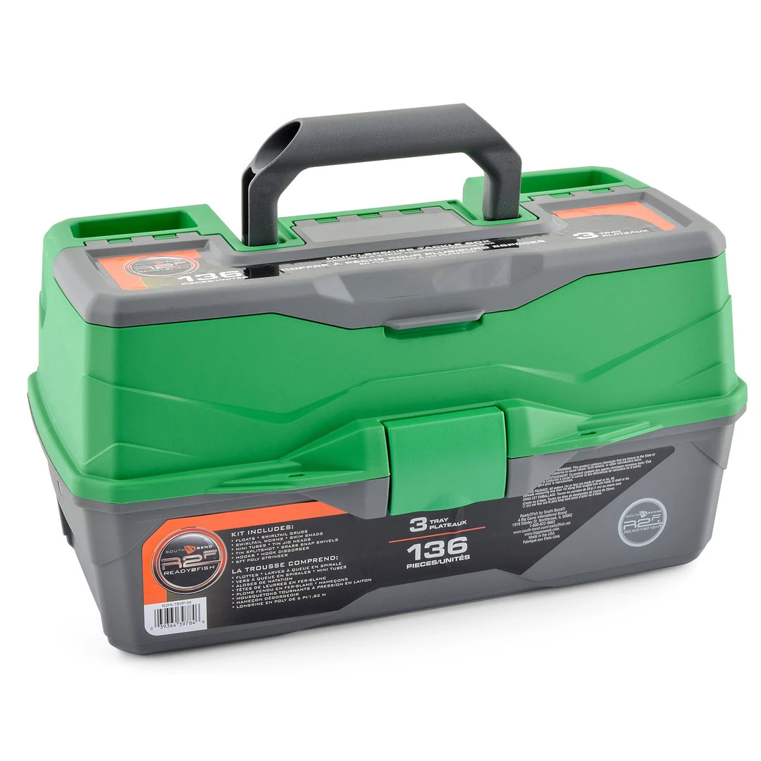 Everything you need for tackle storage including the tackle. This Ready2Fish loaded tackle box includes 136 pieces of tackle including multiple hooks, swivels, weights, bobbers, jig heads, soft baits and a stringer.