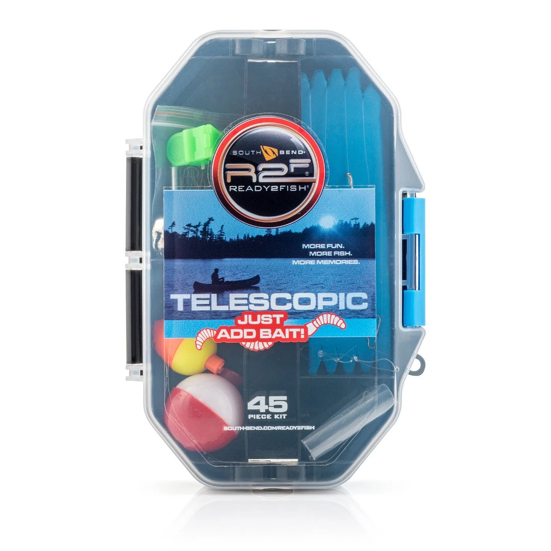 - Includes 45 piece tackle kit including snelled hooks, snell hook holder, fishing bell, steel sinkers, floats and hooks