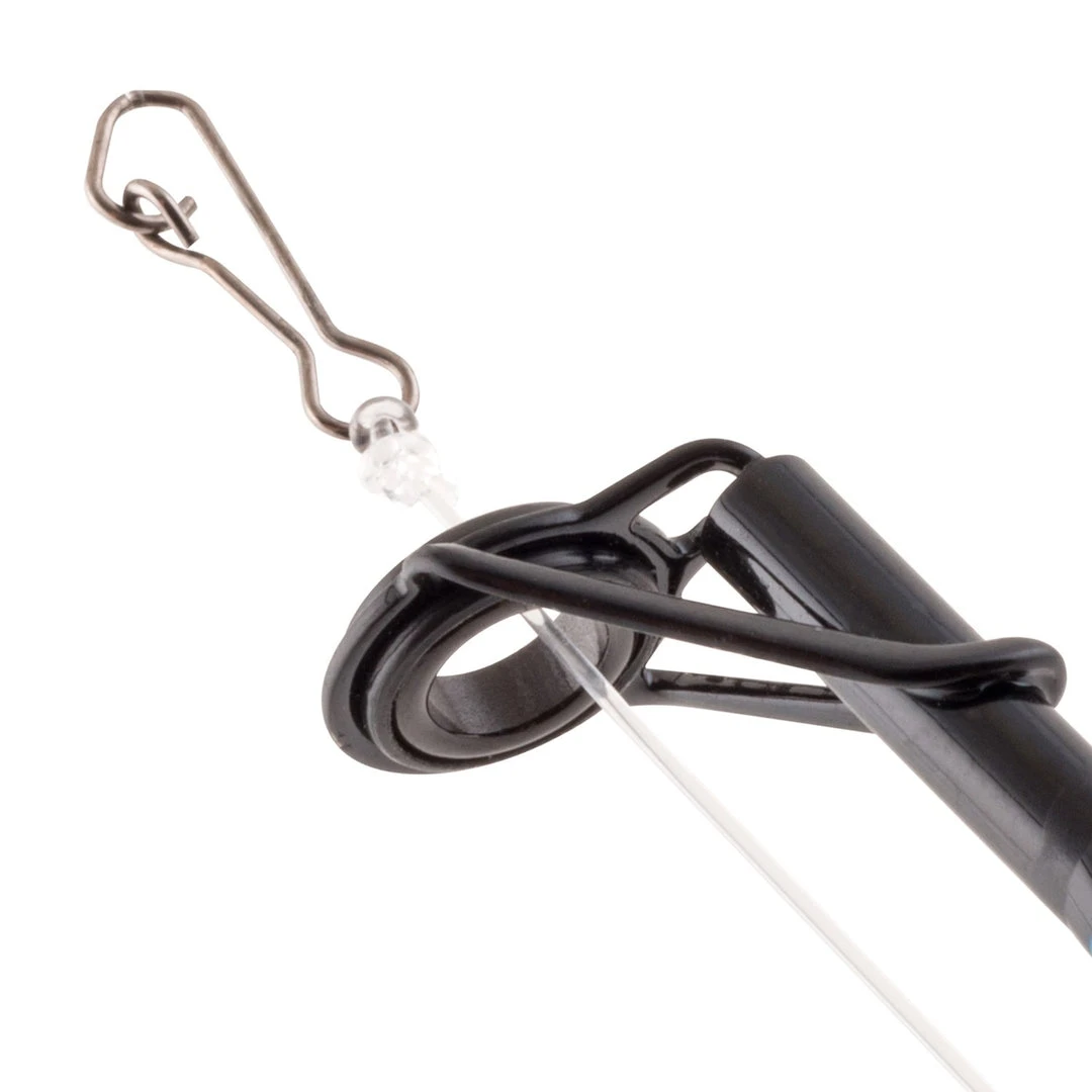 - No Knots Fishing System featuring a snap that is already tied onto your line