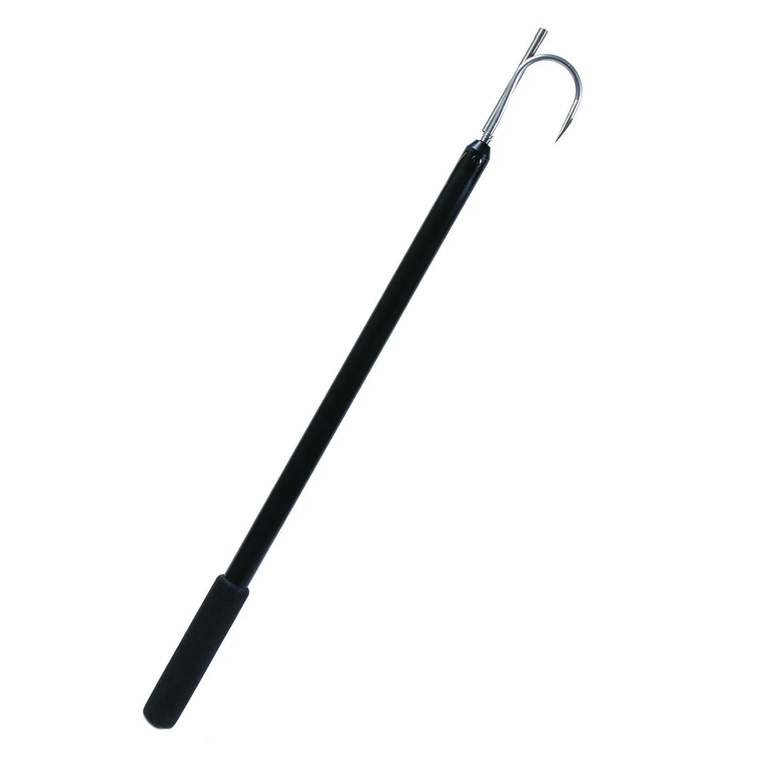 The black series is made with a black matte finish that offers less reflection from glare. Gaffs up to 3′ have one grip. All gaffs 4′ and above have two hand grips, designed to offer maximum holding power with wet hands. The hook is made from the strongest quality stainless steel available. Each hook is hand sharpened with a knife-edge point. Unlike round points cut on a lathe, the tip of the point will not lay over if a bone is struck while gaffing a fish.