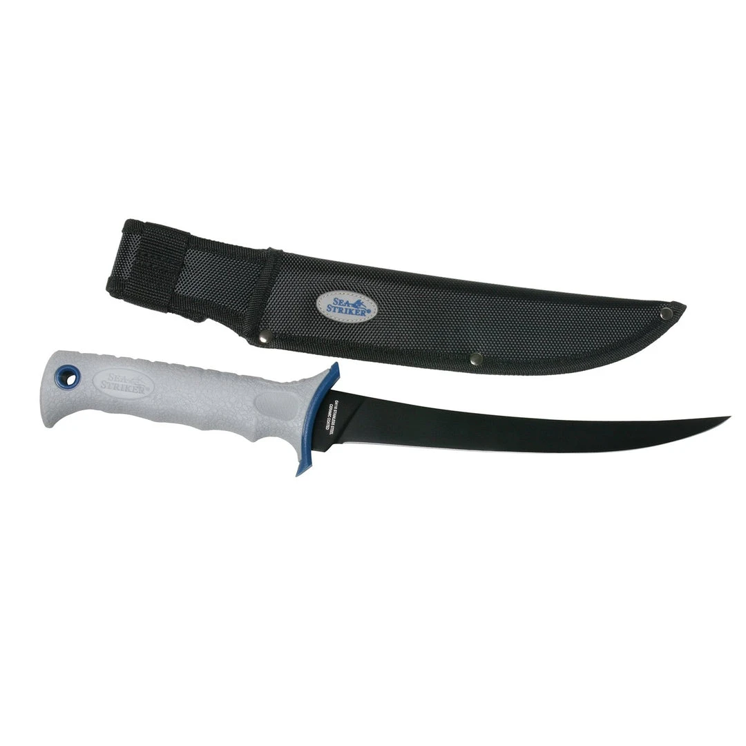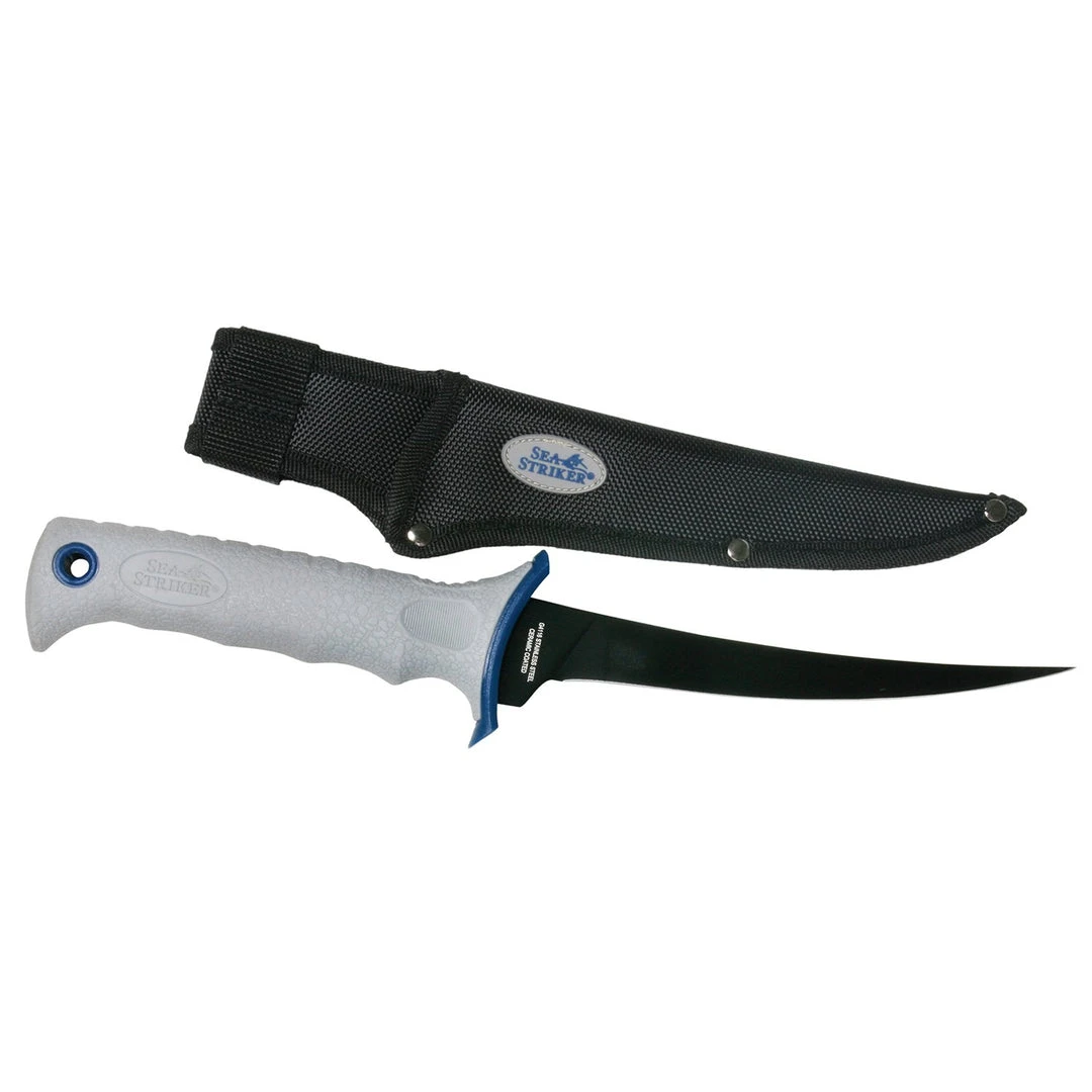 Ceramic coated G4116 stainless steel blade. Progressive taper provides strength and flexibility. Textured ergonomic handle for gives non-slip grip. Cordura sheath included.