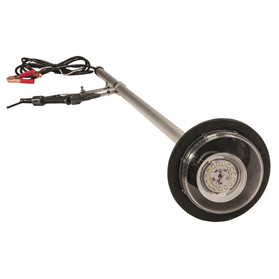 This rugged multi-purpose light features a 15 watt bulb emitting 800 lumens and a replaceable E26 LED bulb. Low amperage draw of .07 AMP and 12 volt power. Durable and versatile mounting clamp with adjustable depth.