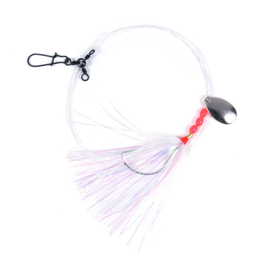 Tied with 2/0 widegap Mustad hook, beads, and spinner with 3-way swivel and snap.