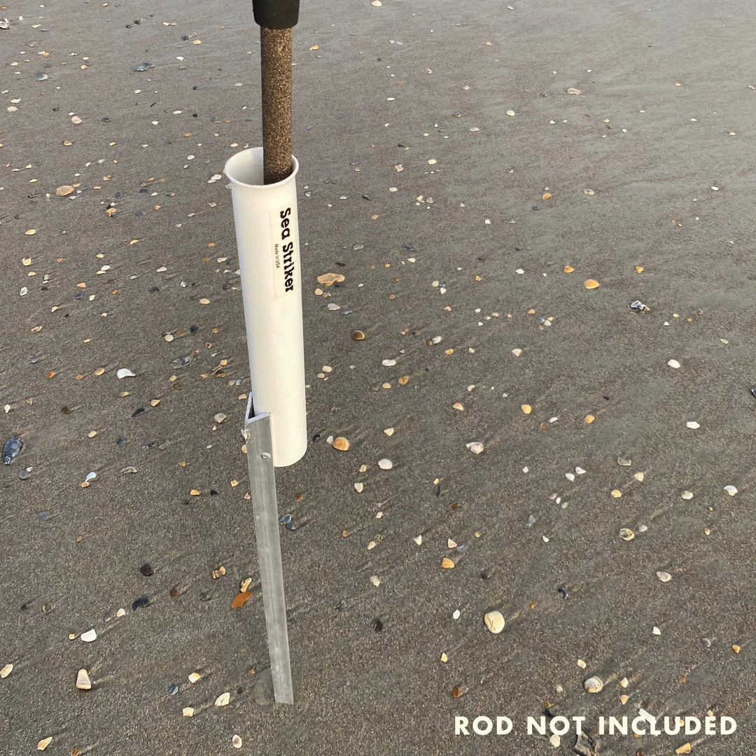 One of the most important pieces of gear for surf fishing. The Sea Striker sand spike with aluminum spike is made from corrosion resistant high-impact plastic and aluminum stake. Angled stake easily pushes into the sand. Available in 28″ or 42″ lengths. Proudly made in the USA.