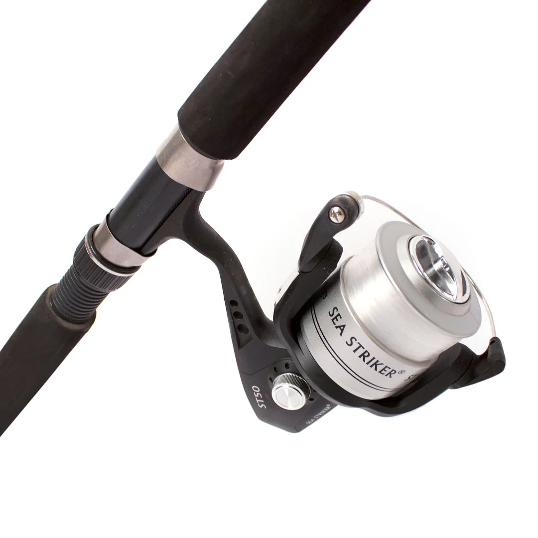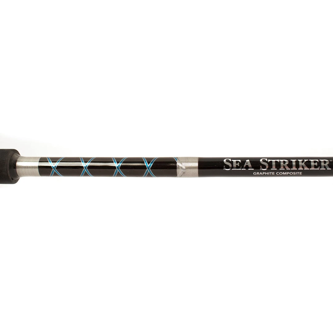 These factory matched Sea Striker® combos pair the right rod with the right reel, so you don’t have to. The rods feature comfortable foam grips. The ball bearing reel system provides smooth operation. Lightweight graphite reel frame and housing. The graphite spool comes filled with monofilament line. Twist free line roller reduces line twists.