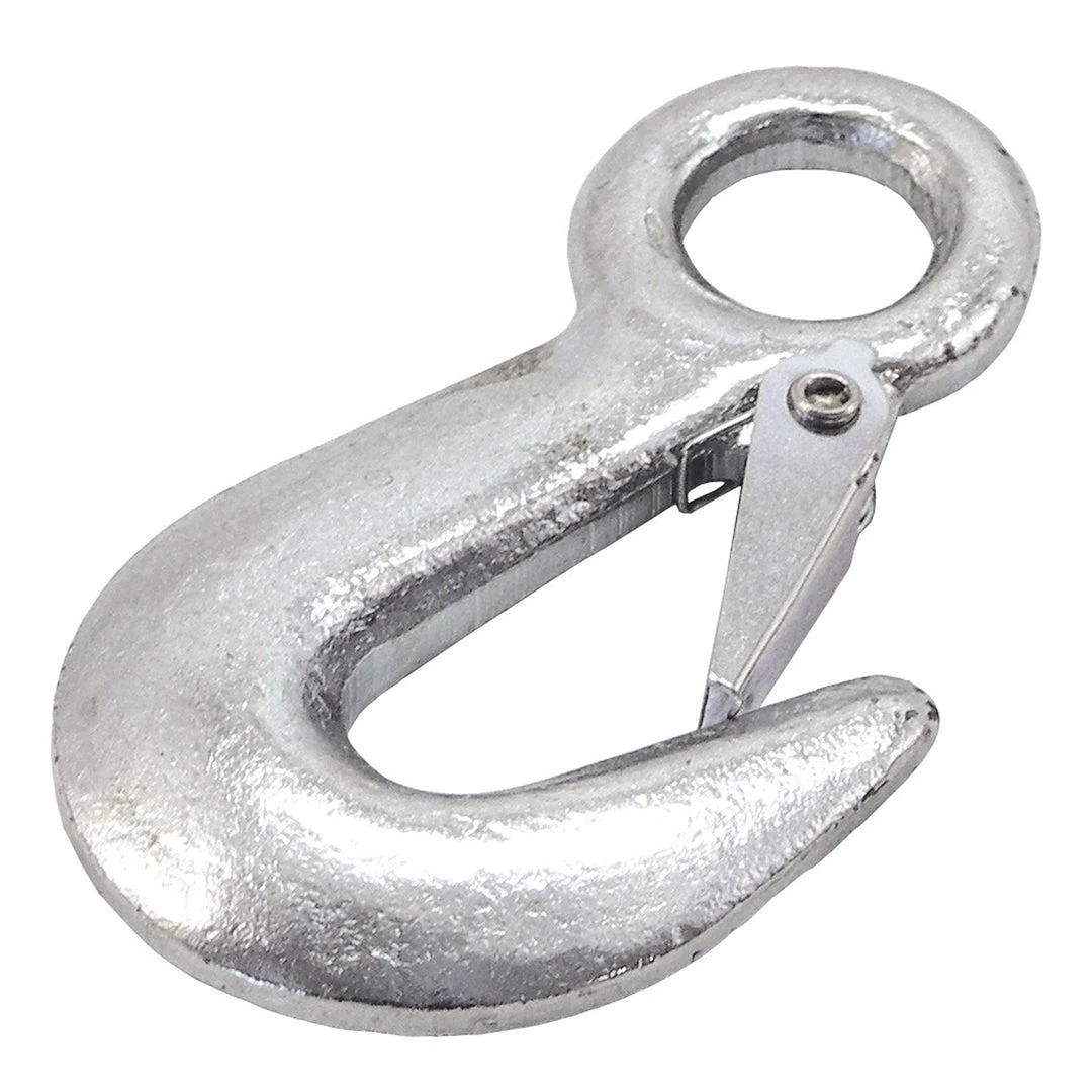 Spring loaded winch hook. Heavy duty zinc plated steel. 1500 lbs working load.