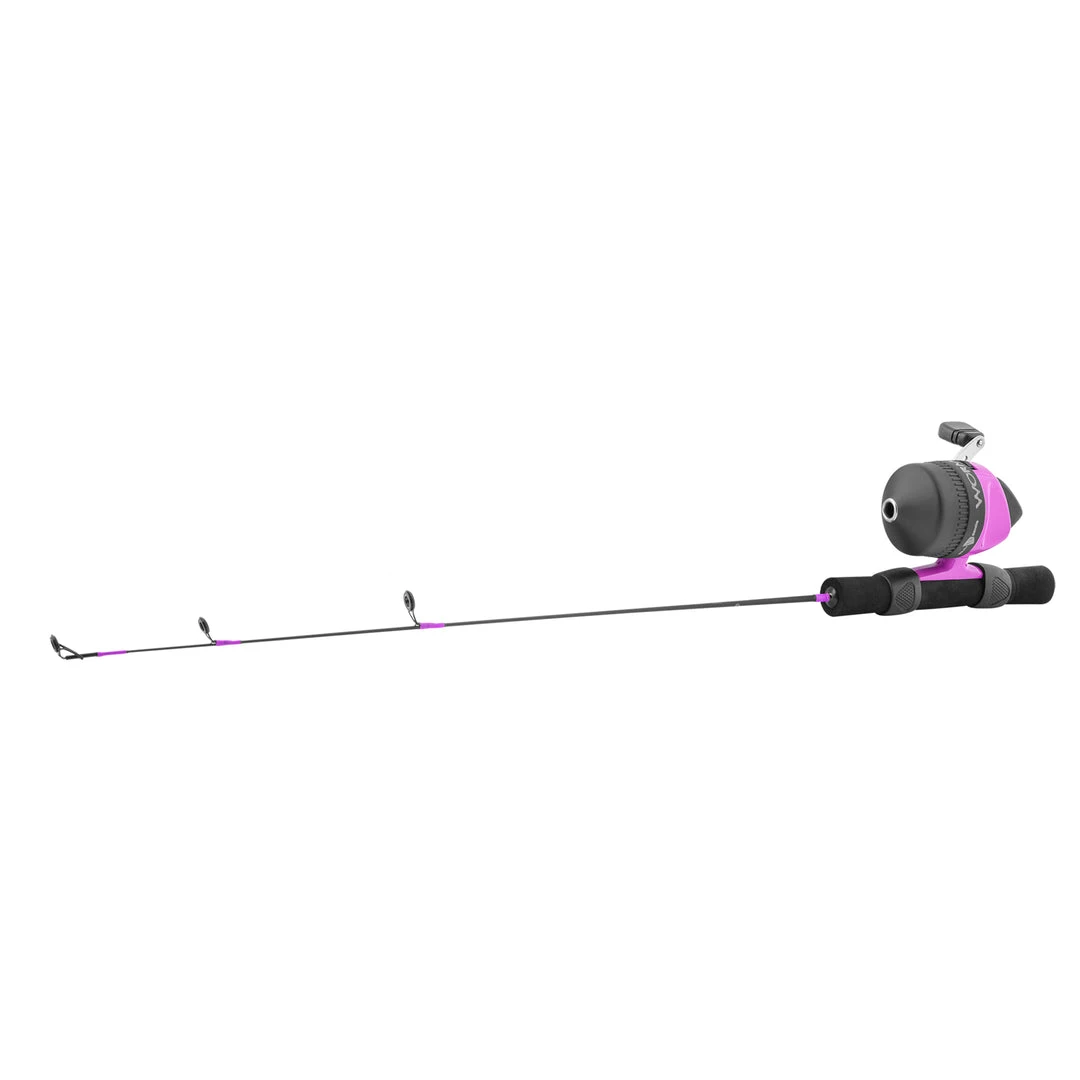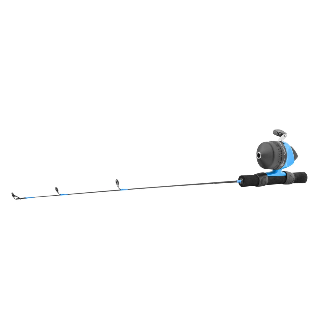 24″ fiberglass rod blank with ultra-sensitive tip. Graphite reel seat with size 10 spinning reel pre-spooled with line.